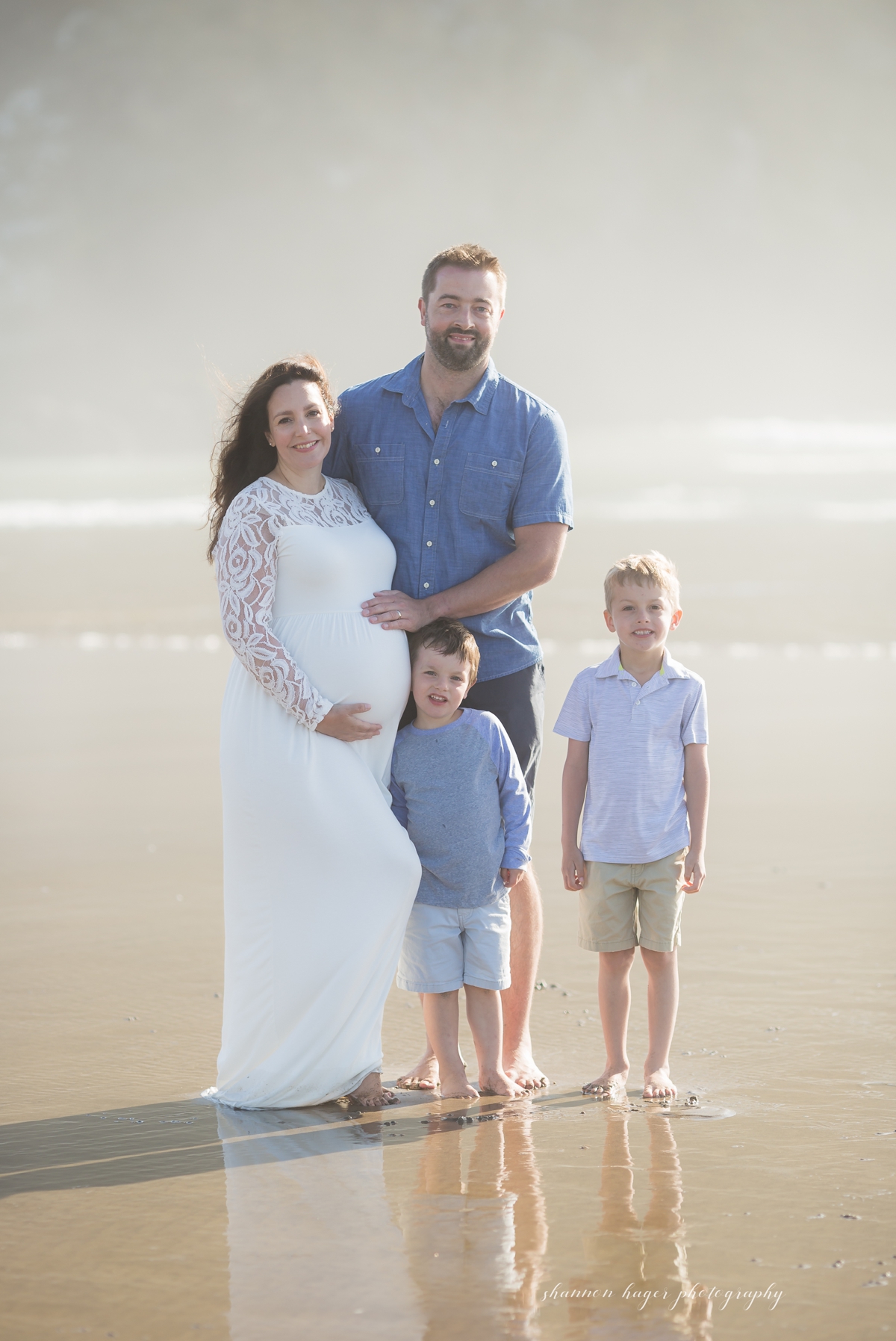 Sarah of course looks absolutely beautiful in both the dresses she brought. I love her British accent and could listen to her talk all day. She is an amazing mom, adored by her husband and loved so much by these two little boys. Becoming a family of 5 is going to be so exciting for them! The light on this summer morning was magical, mixed with some light fog and clouds, it was so dreamy. One of the many reasons I love photographing maternity and family sessions in Cannon Beach.